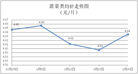 据本市21家农贸市场监测数据显示,上周(1月20日至1月26日)市场上各类“菜篮子”商品供应充足,所监测的7大类“菜篮子”商品价格总体表现为6涨1平。其中:粮油类商品价格基本平稳,肉禽蛋类、蔬果类、水产类商品价格总体略涨。