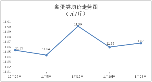 禽蛋类商品价格总体微涨。所监测的5种禽蛋类商品价格波动情况为3涨1跌1平,综合零售均价为每斤11.87元,环比上涨0.07%。其中:白条鸡、白条鸭零售均价分别为每斤20.73元、15.22元,环比分别上涨0.05%、上涨0.13%;鸡蛋、鸭蛋零售均价分别为每斤6.59元、7.66元,环比分别上涨0.30%、下降0.13%。