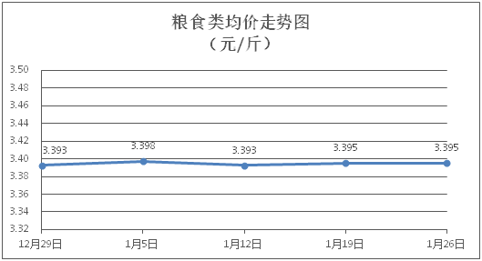 粮食类商品价格基本平稳。所监测的4种粮食类商品价格均持平,零售均价为每斤3.395元。其中:丝苗米、面粉零售均价分别为每斤3.54元、3.40元,环比均持平。