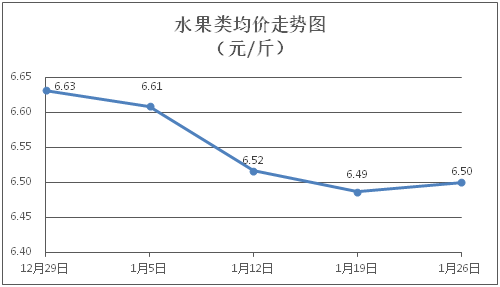 水果类商品价格窄幅盘整。所监测的6种水果商品价格波动情况为3涨1跌2平,综合零售均价为每斤6.50元,环比上涨0.21%。其中橙子、苹果、葡萄零售均价分别为每斤5.75元、7.26元、13.62元,环比分别上涨0.88%、上涨0.41%、下降1.09%。