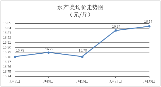 水产类商品价格微幅波动。所监测的9种水产商品价格波动情况为4涨3跌2平,综合均价为每斤16.84元,环比上涨0.05%。其中:草鱼、鲫鱼、鳙鱼、罗非鱼、基围虾零售均价分别为每斤11.11元、14.30元、10.78元、9.14元、30.12元,环比分别下降0.18%、下降0.83%、上涨1.32%、上涨0.11%、上涨0.03%。