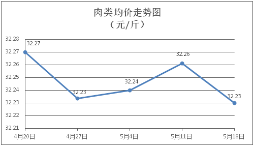 肉类商品价格有所回落。所监测的8种肉类商品价格波动情况为2涨5跌1平,综合零售均价为每斤32.23元,环比下降0.10%。其中:排骨、精瘦肉、肋条肉、牛肉、带骨羊肉零售均价分别为每斤30.64元、19.31元、15.98元、46.33元、41.74元,环比分别下降0.20%、下降0.16%、上涨0.50%、上涨0.26%、下降0.71%。