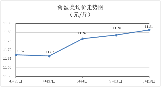 禽蛋类商品价格微幅上涨。所监测的5种禽蛋类商品价格波动情况为2涨1跌2平,综合零售均价为每斤11.81元,环比上涨0.25%。其中:白条鸡、白条鸭零售均价分别为每斤20.72元、15.31元,环比分别上涨0.44%、上涨0.46%;鸡蛋、鸭蛋零售均价分别为每斤6.64元、7.19元,环比分别下降0.15%、持平。
