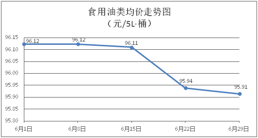 食用油类商品价格稳中微降。所监测的9种食用油(5L装)商品价格波动情况为2涨4跌3平,综合零售均价为每桶95.91元,环比下降0.03%。其中:大豆油、玉米油零售均价为每桶61.42元、76.24元,环比分别下降0.13%、上涨0.07%。