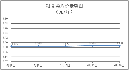 粮食类商品价格保持稳定。所监测的4种粮食类商品价格均持平,综合零售均价为每斤3.388元。其中:丝苗米、面粉零售均价分别为每斤3.51元、3.40元,环比均持平。