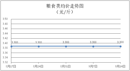 粮食类商品价格保持稳定。所监测的4种粮食类商品价格均持平,综合零售均价为每斤3.388元。其中:丝苗米、面粉零售均价分别为每斤3.51元、3.39元,环比均持平。