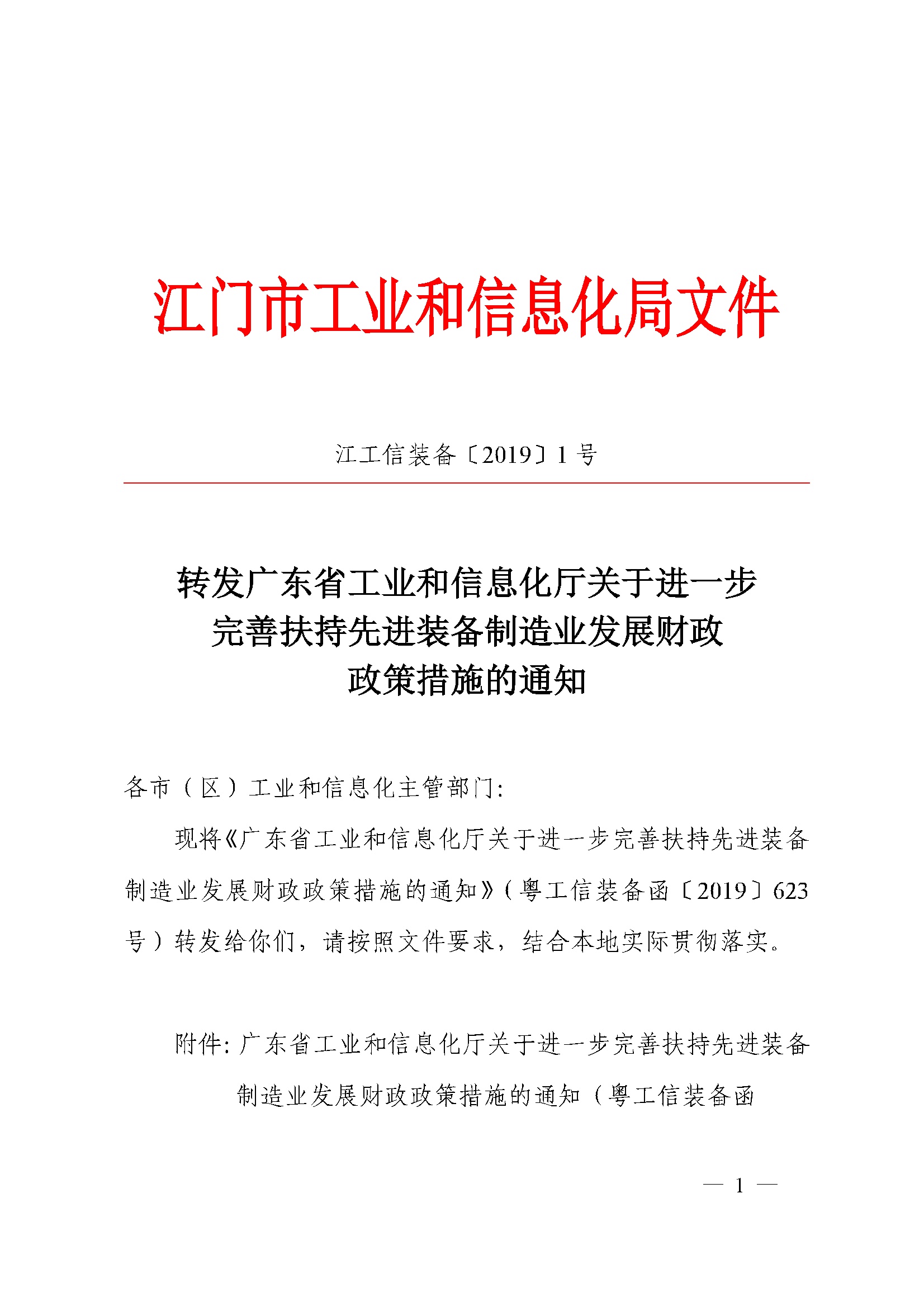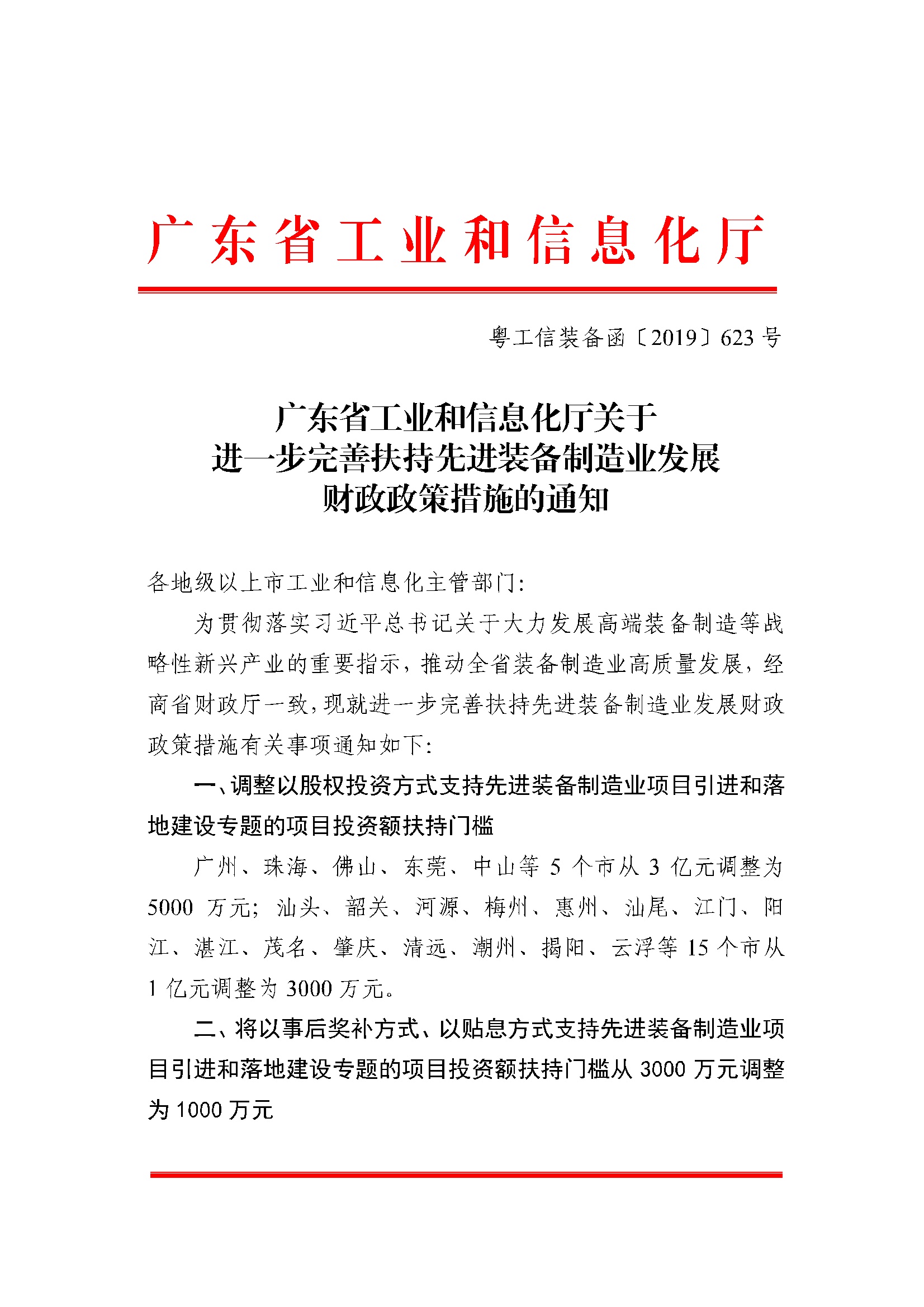 转发广东省工业和信息化厅关于进一步完善扶持先进装备制造业发展财政政策措施的通知