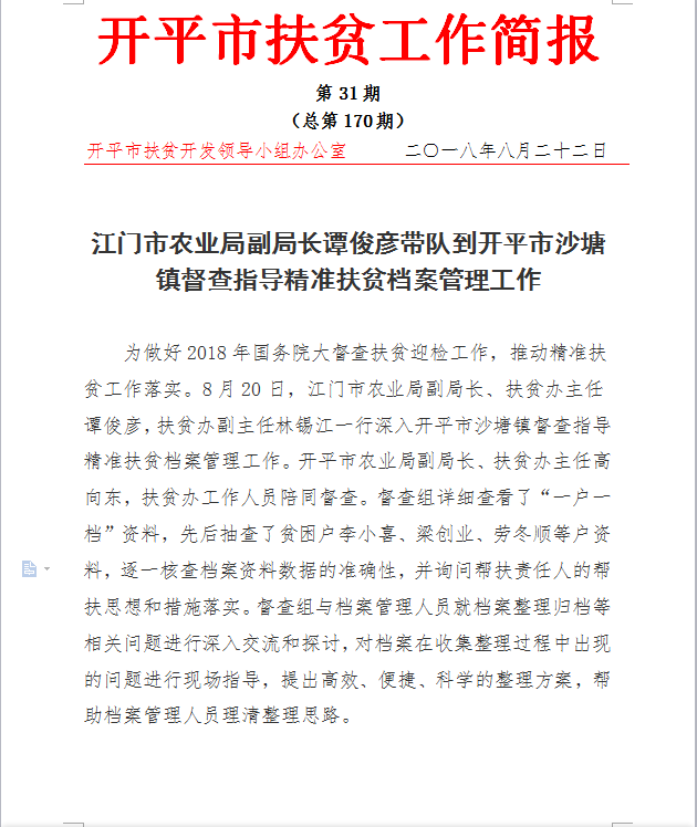 开平扶贫工作简报2018年第31期(总第170期)
