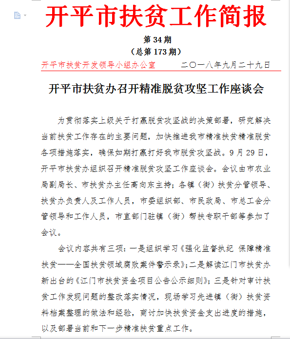 开平扶贫工作简报2018年第34期(总第173期)