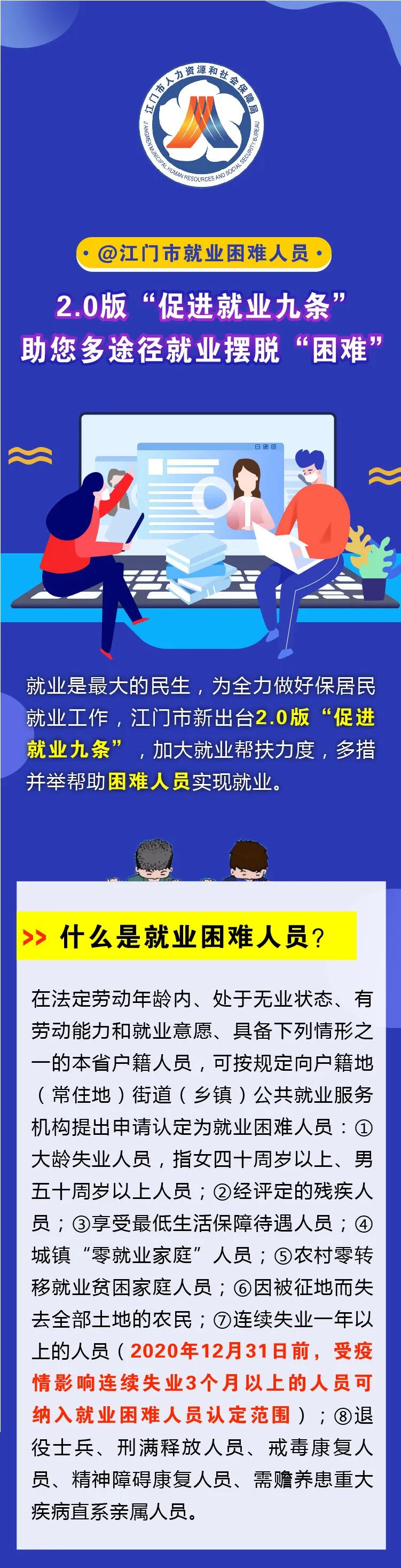 【扩散周知】@江门市就业困难人员:2.0版“促进就业九条”助您多途径就业摆脱“困难”