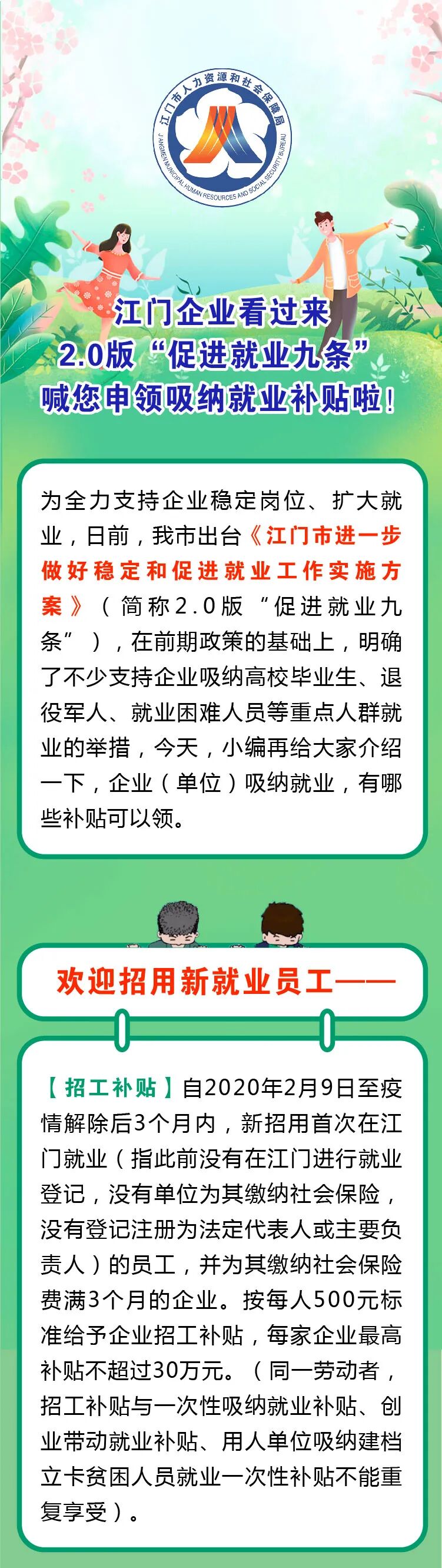 【扩散周知】@江门企业看过来,2.0版“促进就业九条”喊您申领吸纳就业补贴啦!