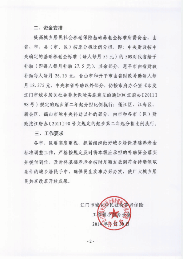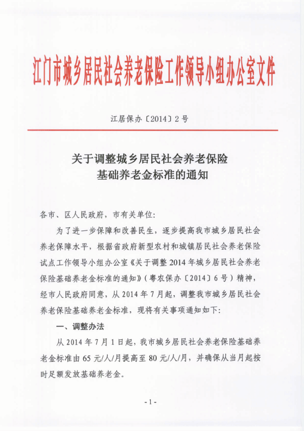 关于调整城乡居民社会养老保险基础养老金标准的通知
