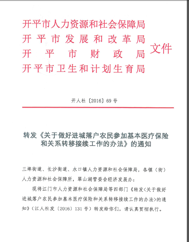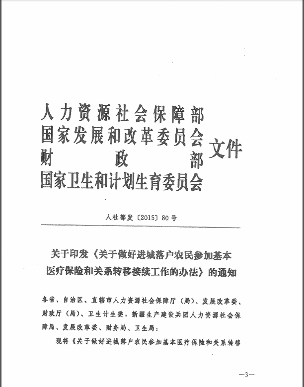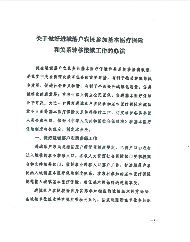 转发《关于做好进城落户农民参加基本医疗保险和关系转移接续工作的办法》的通知