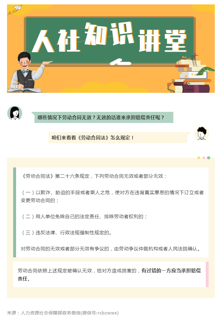【人社普法速递 | 第一百七十二期】哪些情况下劳动合同无效?