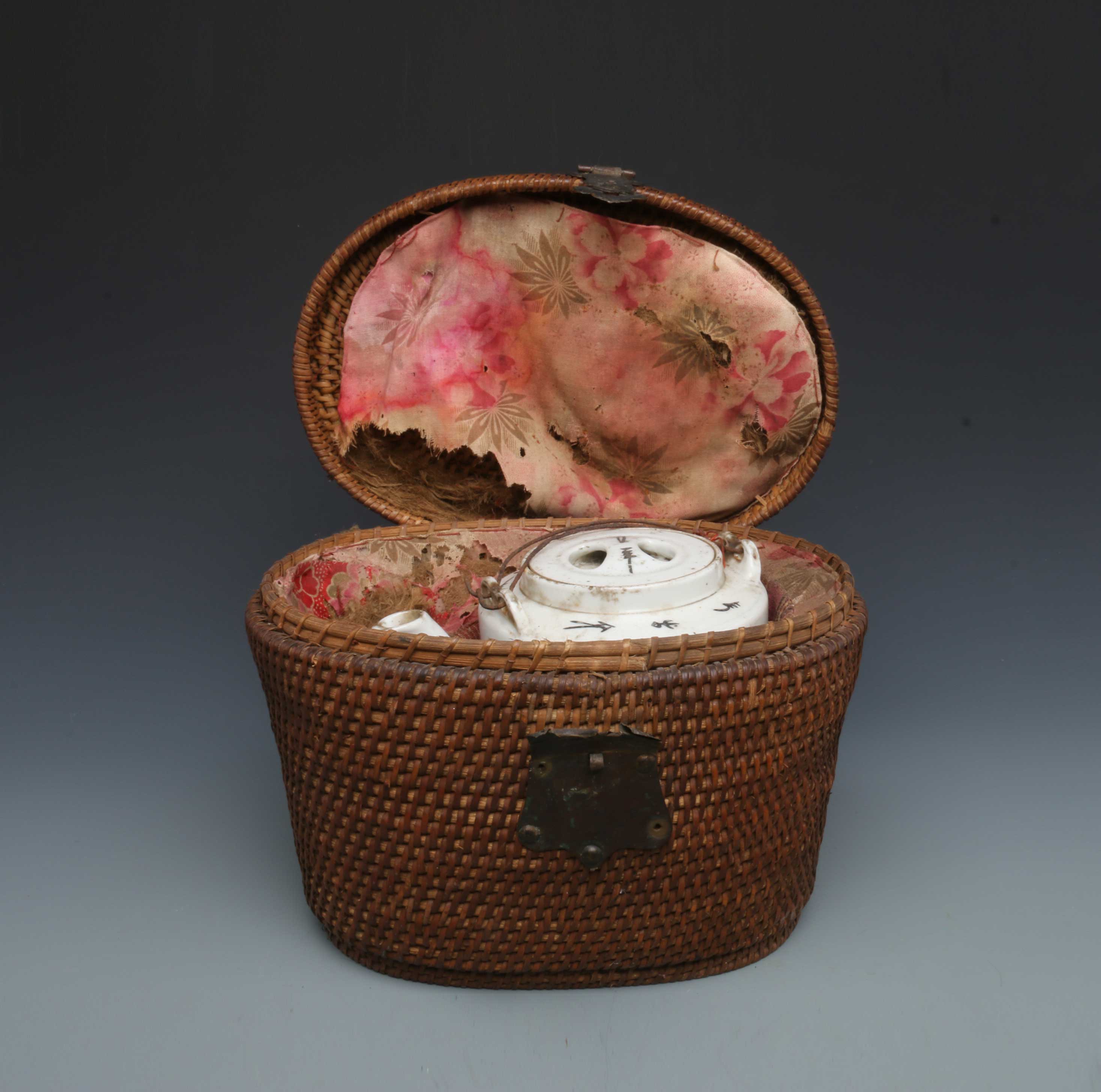 藤编保暖茶壶盖箩(带瓷茶壶)