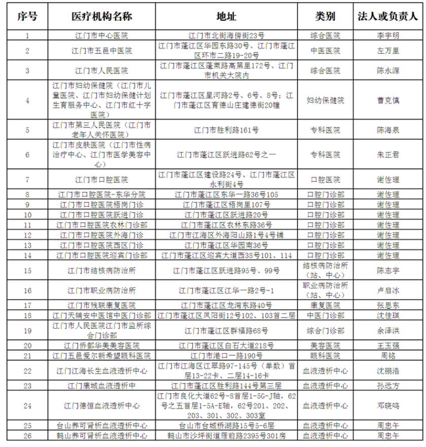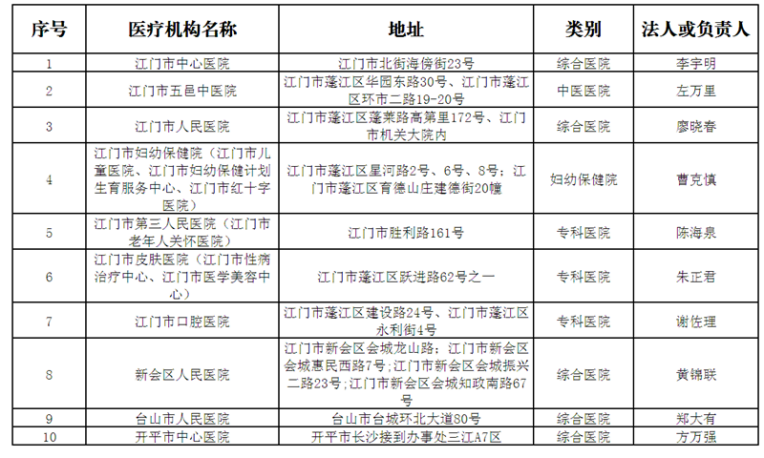 江门市卫生健康局负责核发《医疗机构执业许可证书》的医疗机构基本信息