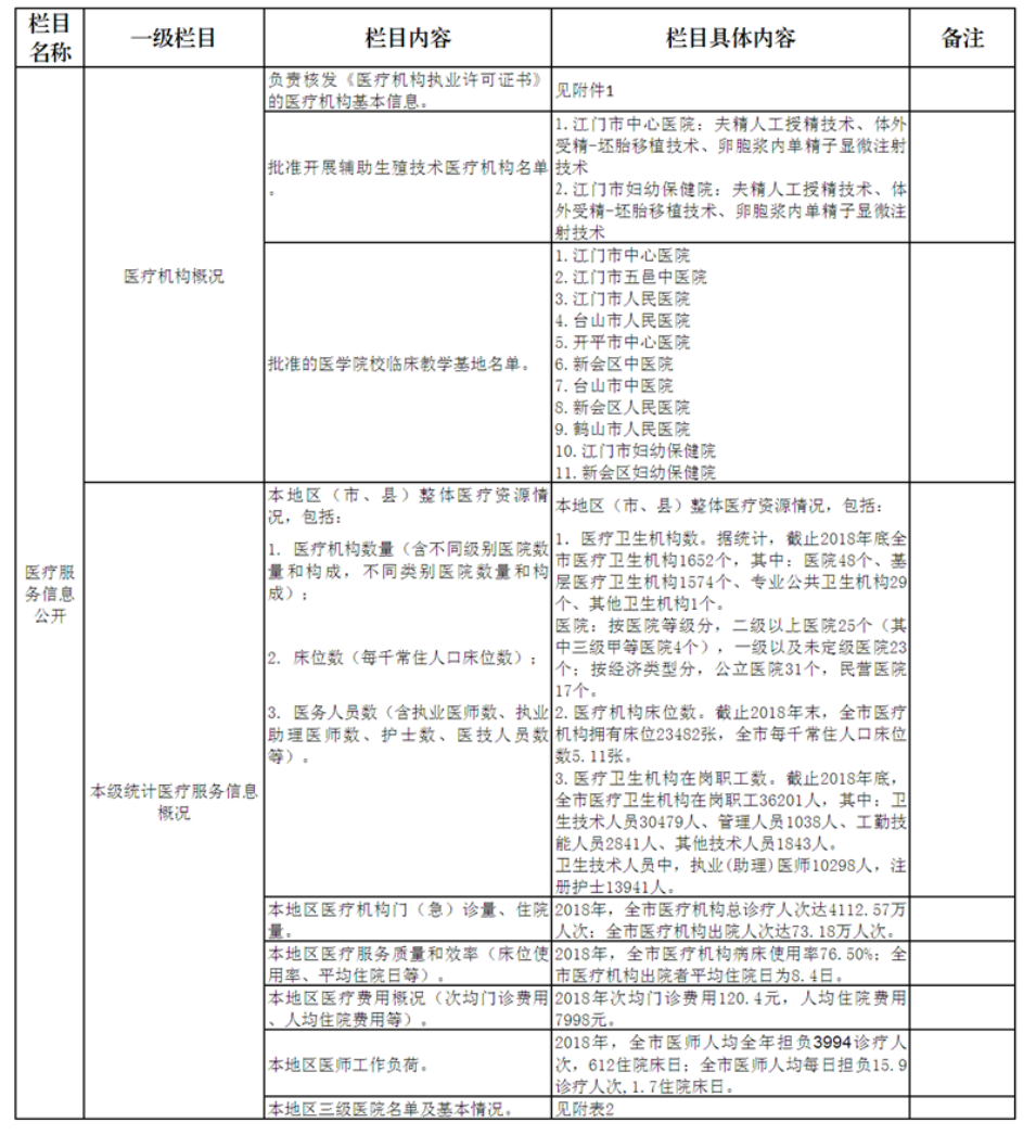 来源:江门市卫生和计划生育局附表1江门市卫生健康局负责核发《医疗机构执业许可证书》的医疗机构基本信息附表2江门市三级医院名单及基本情况