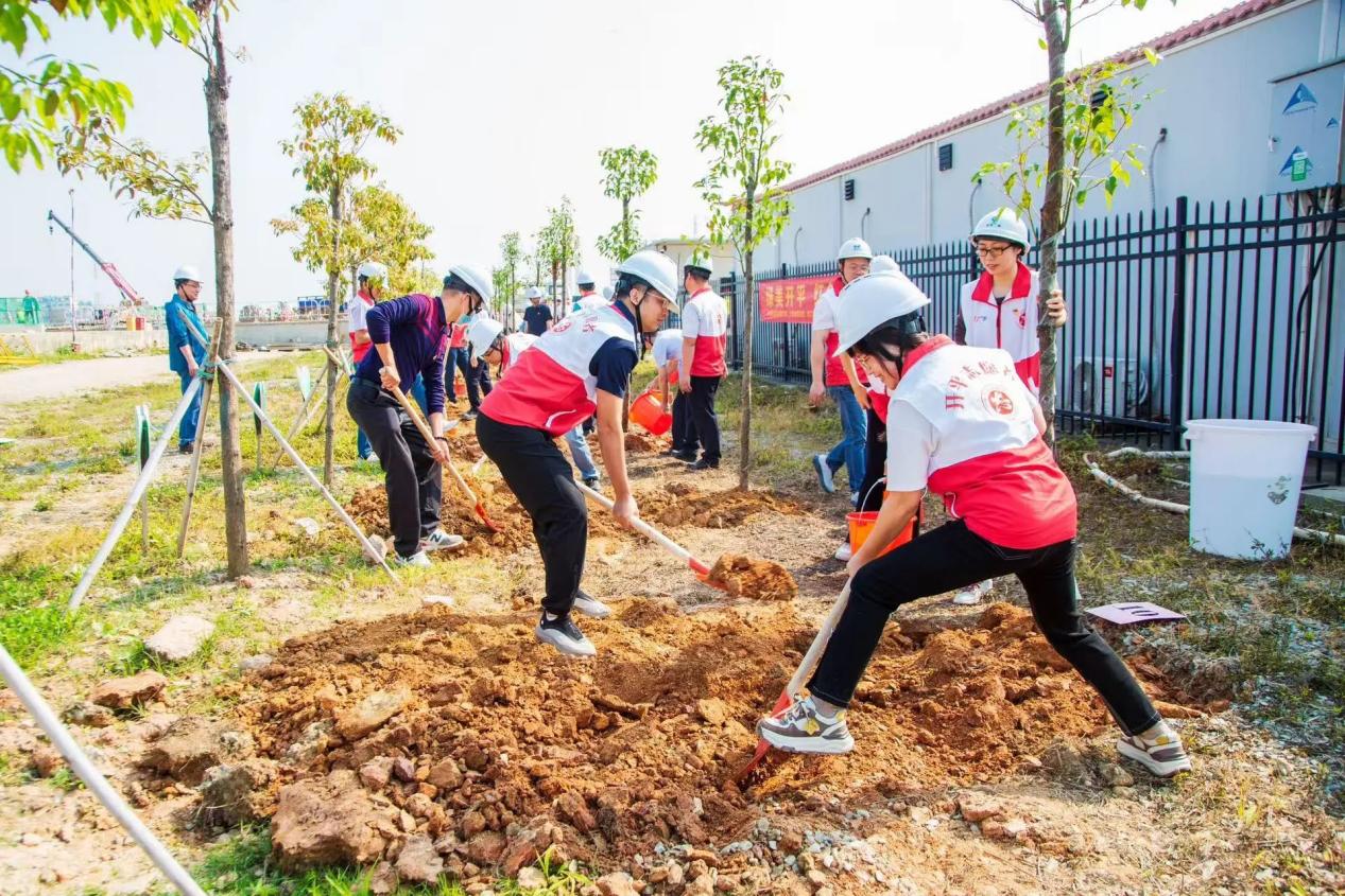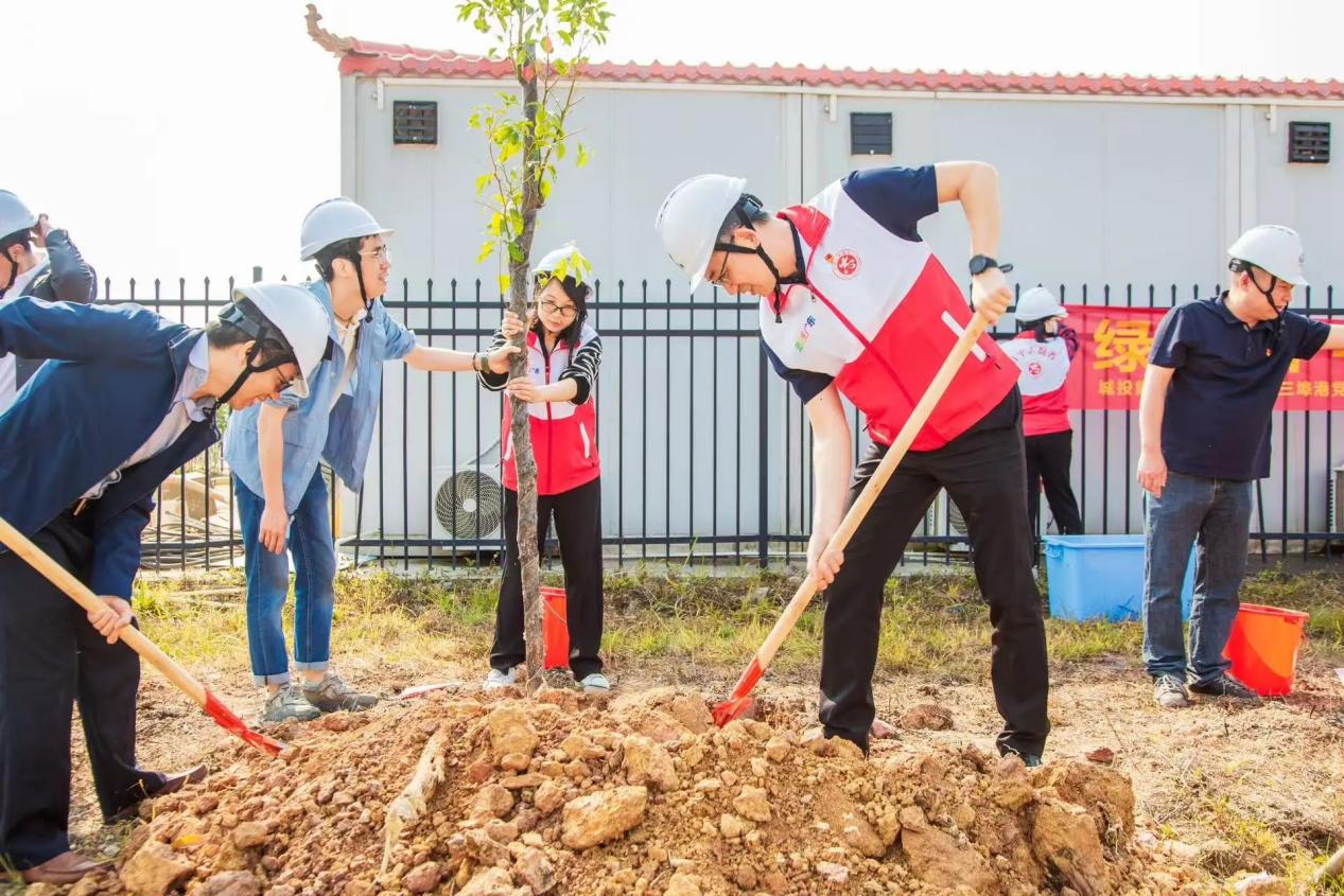 春风送暖万物苏,植树播绿惠千秋。为深入学习贯彻习近平生态文明思想,贯彻落实绿美广东生态建设部署,3月25日上午,市城投集团、三埠港合营公司、珠江货运代理公司以党支部联建共建活动为契机,在三埠新港港区联合开展了义务植树主题党日活动,以实际行动为“百千万工程”增“绿”赋能,为生态文明建设贡献力量。 活动现场,全体党员热情高涨,干劲十足,大家按照组别分工协作、默契配合,从挥锹铲土到扶苗填坑,从提水浇灌到培土夯实,每一个环节都认真细致、一丝不苟。在大家的共同努力下,一棵棵希望之苗“安家落户”,为三埠新港带来了新的生机与活力,“党建红”和“环保绿”在明媚的阳光中焕发出蓬勃生机。 本次植树活动不仅是一次绿化行动,更是贯彻绿色发展理念、推进生态文明建设的又一次生动实践,下阶段,城投集团公司将始终坚持党建引领,积极履行社会责任,持续深化国企间的共建合作,以实际行动守护“绿水青山”,为筑牢港区绿色生态屏障、打造“绿美开平”贡献城投力量。