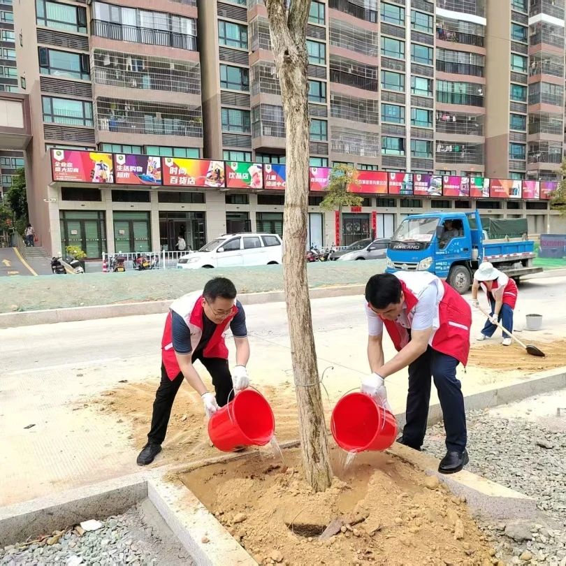 春满人间草木欣,植树添绿正宜时。为深入贯彻习近平生态文明思想,积极响应省委关于深入推进绿美广东生态建设的号召,3月28日上午,公控集团办公室党支部联合新路达公路工程有限公司党支部和广东开赢科技有限公司党支部,前往开平市迳头中路开展“主题党日种春风·党员携手绿意浓”植树活动,用实际行动践行生态文明理念,为绿美开平建设贡献国企力量。 活动现场,20余名党员志愿者身着红马甲,在公控集团党委书记、董事长伍卫良的带领下,分组协作、配合默契,挥锹挖坑、扶正树苗、培土浇水,每个环节都一丝不苟。经过一番精心细致的栽种作业,新栽种的树苗整齐排列,在春日暖阳下傲然挺立,为迳头中路沿线披上了一袭崭新的绿装,成为一道亮丽的生态风景线。 本次植树活动以"党建红"引领"生态绿",既有效提升了共建支部的协同效能,更是将组织优势转化为生态治理优势的生动实践。参与的党员干部一致表示,将深入践行"绿水青山就是金山银山"理念,紧扣绿美开平生态建设目标,以岗位建功的实际行动,为推进“百千万工程”、打造宜居宜业和美乡村注入绿色动能,共同绘就开平高质量发展的生态底色。