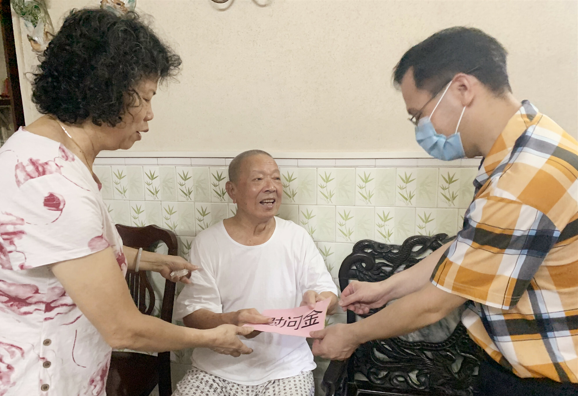 二是慰问老党员。2020年7月1日,受住建局党组书记、局长胡震同志委托,住建局党组成员、机关党委书记曾汉斌同志带队走访慰问许树荣、周汉生、余惠贞、甄锦财等老党员、患病党员,送去组织的关怀和温暖,与他们亲切交谈,详细了解生活情况,听取他们对住建局党建工作的意见和建议,并送上慰问金。