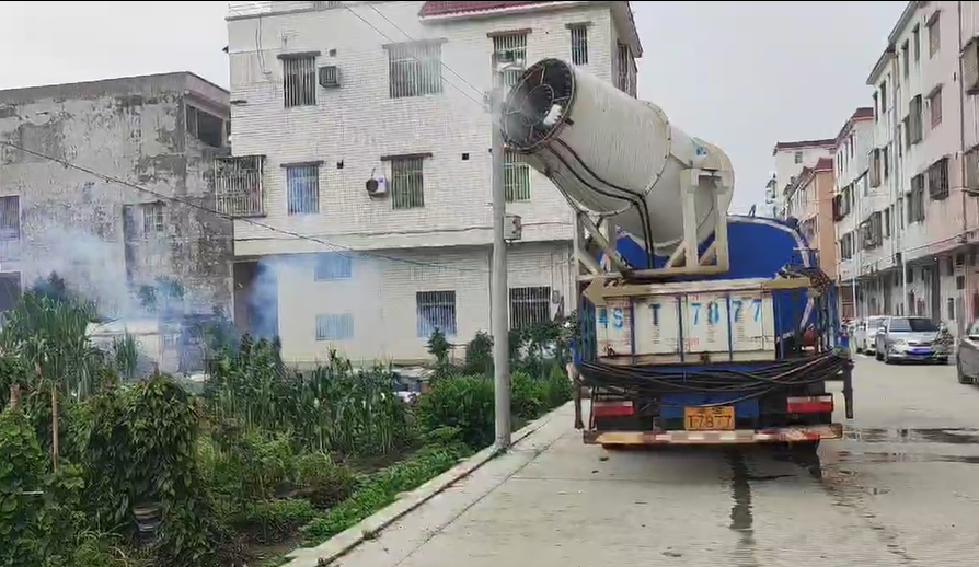 7月31日 水口镇利用大型无人机设备进行灭蚊集中消杀行动 月山镇则出动雾炮车助力“灭蚊战”