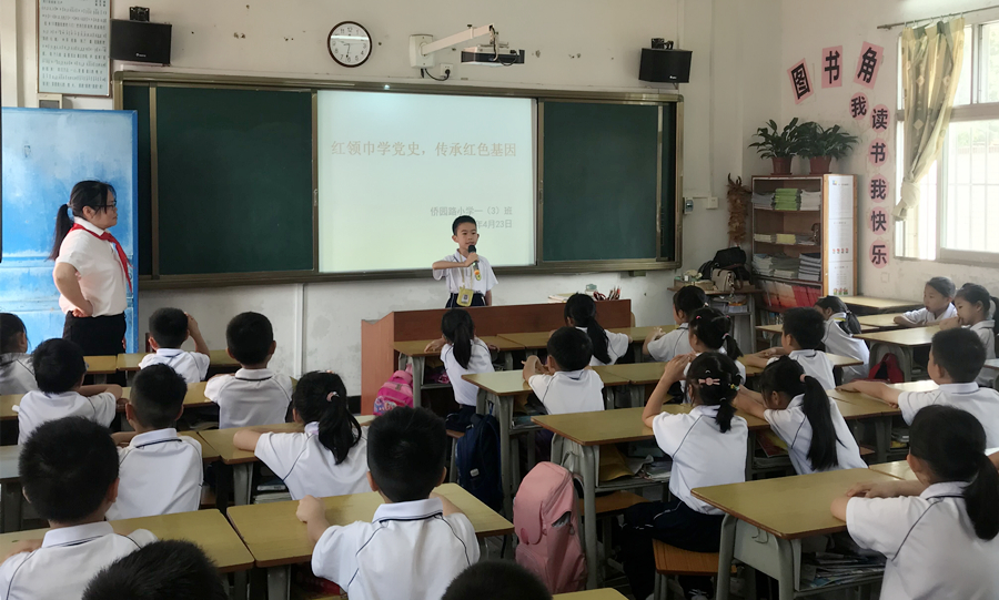 活动在义工家长和同学们齐诵《少年中国说》经典段落中拉开序幕。侨园路小学举办的读书节系列活动,通过阅读红色经典书籍,开展党史知识竞赛、唱红色歌曲、听党的故事等,勉励同学们多读书,读好书,为实现中华民族的伟大复兴而努力。活动还对读后感比赛和创意小书签比赛获奖学生进行颁奖。江门开平长江村镇银行代表捐赠一批红色经典书籍和教育书籍给侨园路小学。来自侨园社区和江门开平长江村镇银行代表分别进行“党的故事我来讲”宣讲。希望同学们通过阅读红色经典书籍,传承红色基因,开拓视野,增长知识,强我中华。随后,学校结合语言特色教学,各班级师生开展“一对一”“一对红”党的故事我来讲的活动,引导学生广泛阅读红色经典文艺作品、英雄模范故事、红色书信,并以征文、朗读、演讲的形式谈感悟体会,交流思想分享收获。