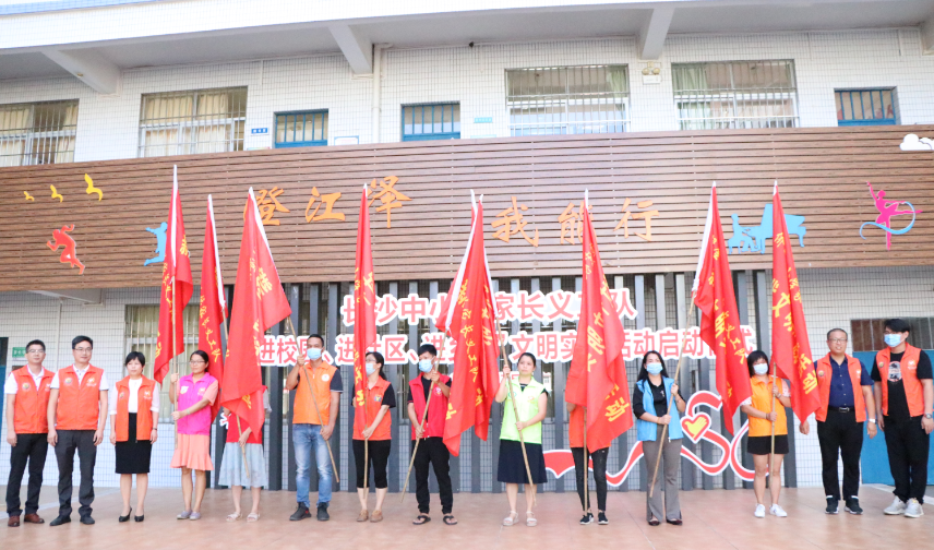 7月23日上午,开平市长沙中小学家长义工队“进校园、进社区、进乡村”文明实践活动在澄江小学启动,以实际行动推动城市提质,助力开平创文。