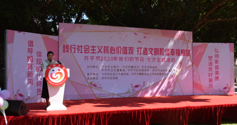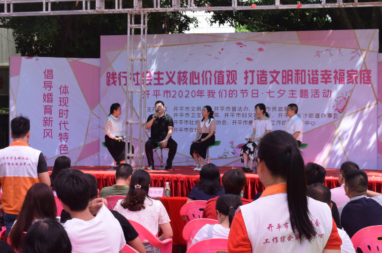 25日上午,开平市“践行社会主义核心价值观、打造文明和谐幸福家庭”七夕主题活动在长沙街道东兴社区公园举办。