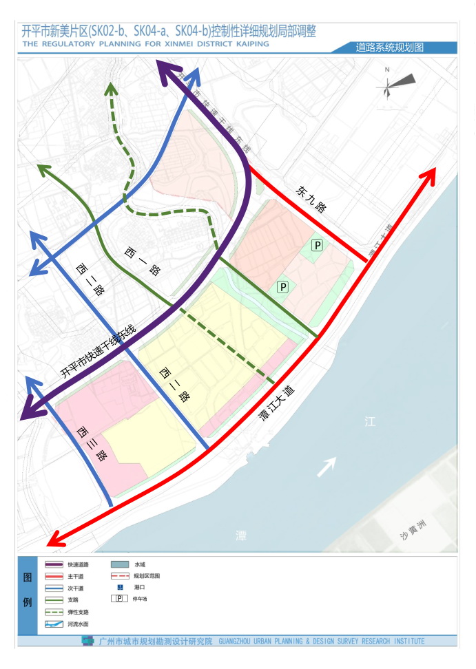 规划构建“快速路——主干路——次干路——支路”系统和“四纵两横”方格路网。“四纵”:东九路、西一路(暂名)、西二路(暂名)、西三路(暂名);“两横”:潭江大道、开平快速干线东线。