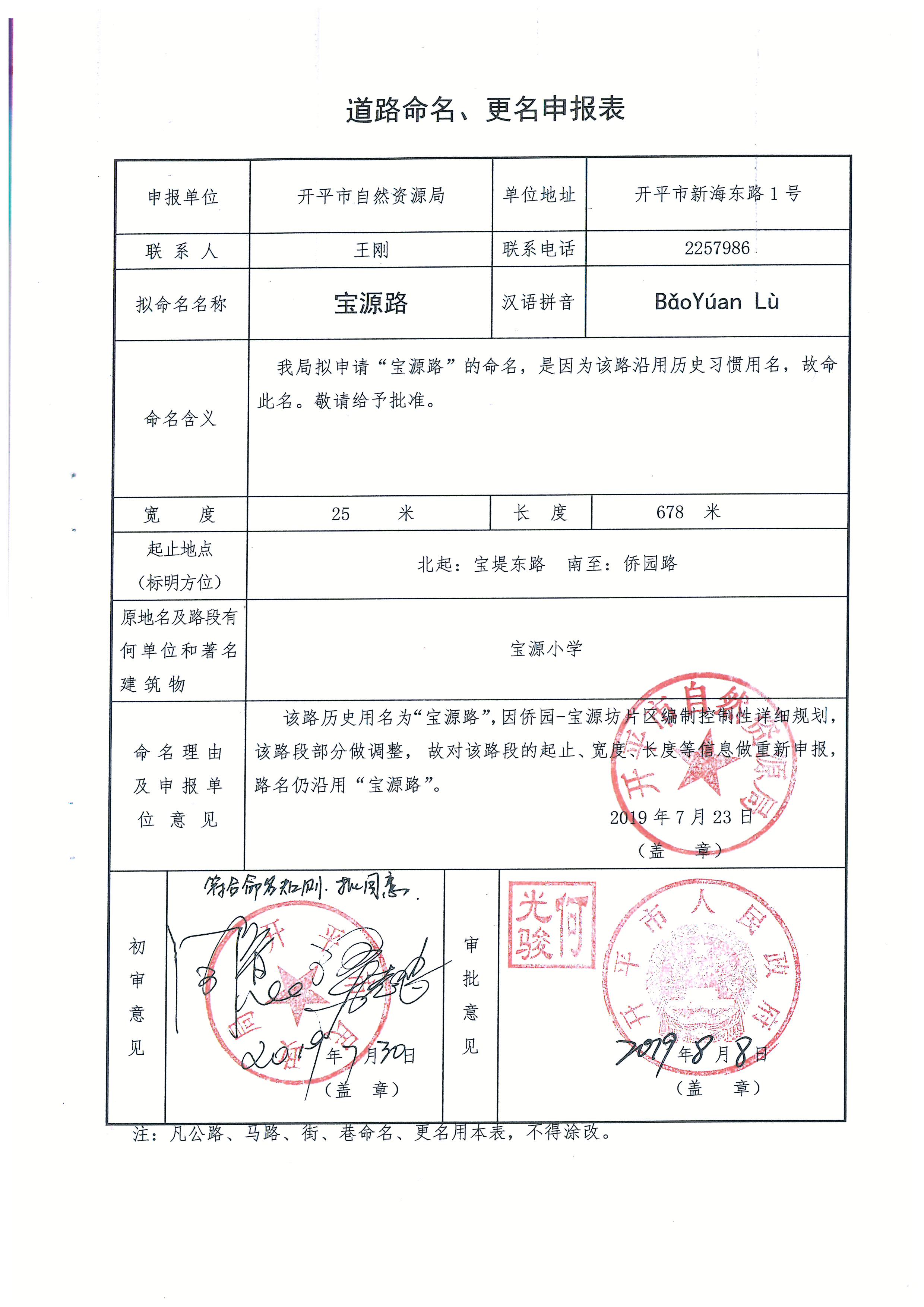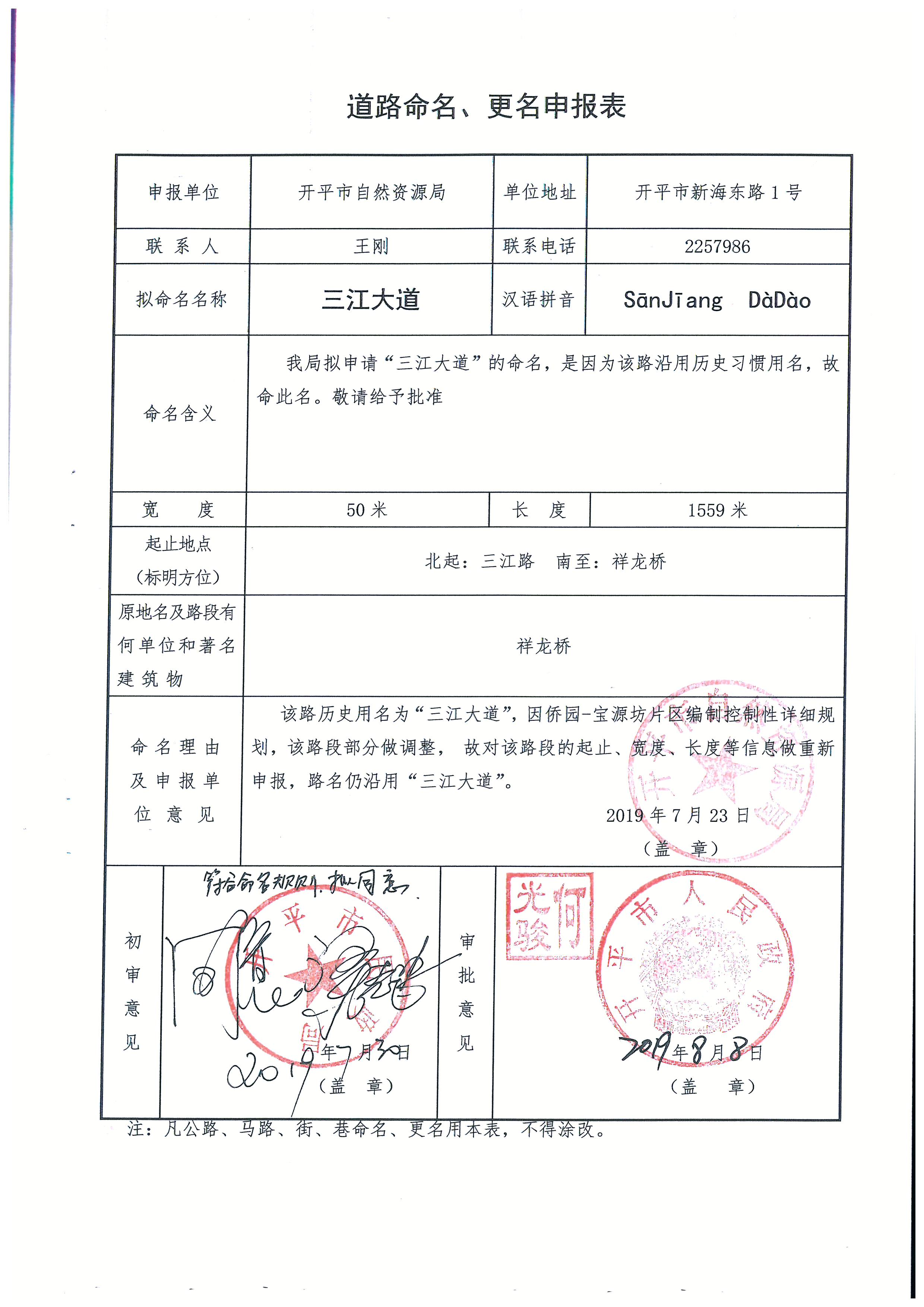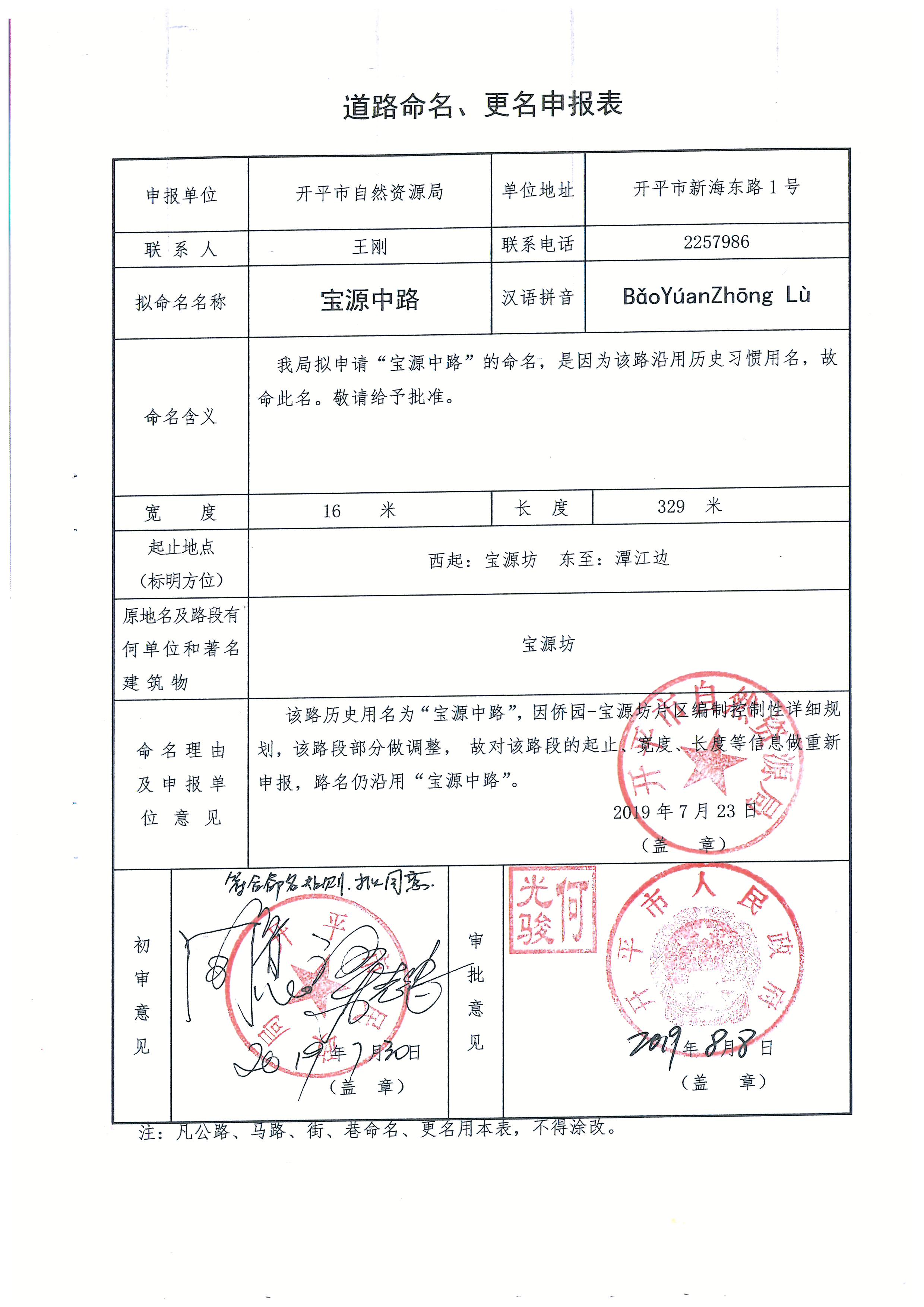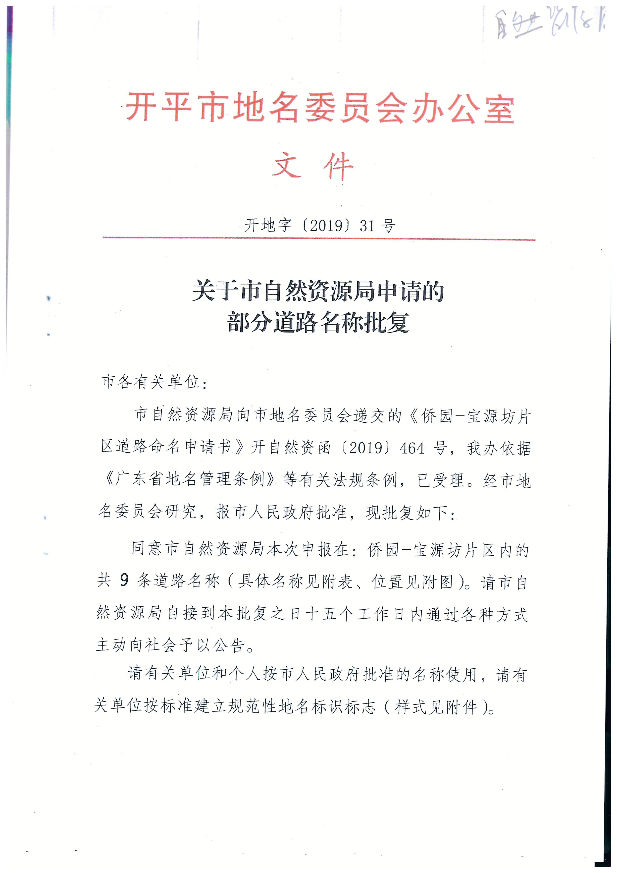 关于市自然资源局申请的部分道路名称批复