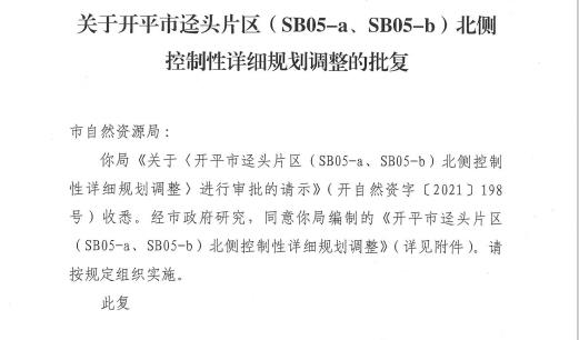 关于公布《开平市迳头片区(SB05-a、SB05-b)北侧控制性详细规划调整》成果的通知
