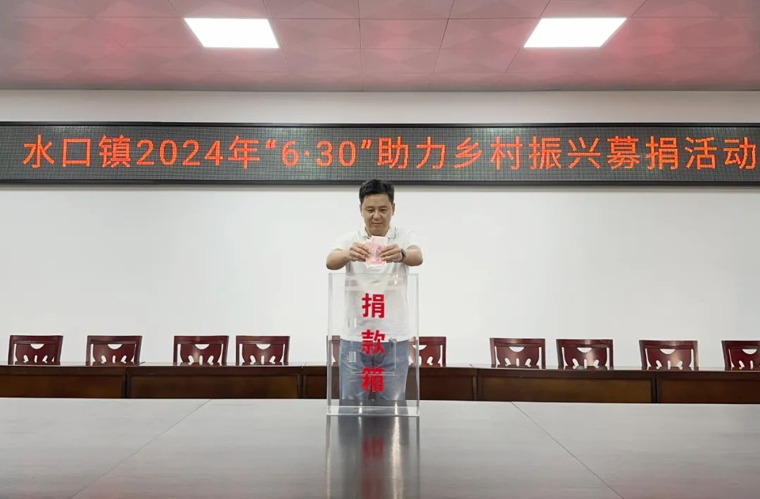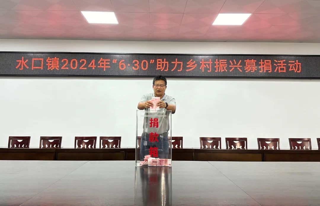 为进一步弘扬中华民族扶贫济困、守望相助的传统美德,全方位营造乐善好施、奉献爱心的浓厚氛围,持续巩固拓展脱贫攻坚成果,水口镇认真贯彻落实市委市政府关于开展2024年“6·30”助力乡村振兴活动的文件精神和部署要求,组织广大党员干部、职工群众开展慈善捐款活动,为实施“百千万工程”、推进乡村全面振兴添砖加瓦。