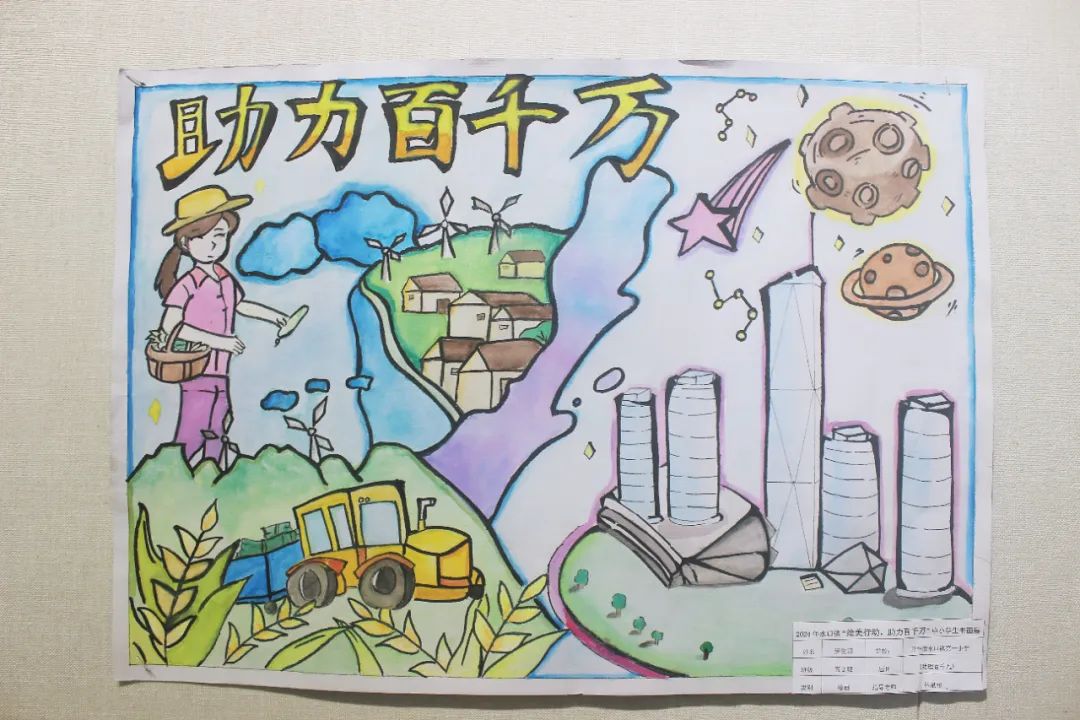 绘画作品上,一笔一画色彩斑斓,绘出精彩时代华章;
