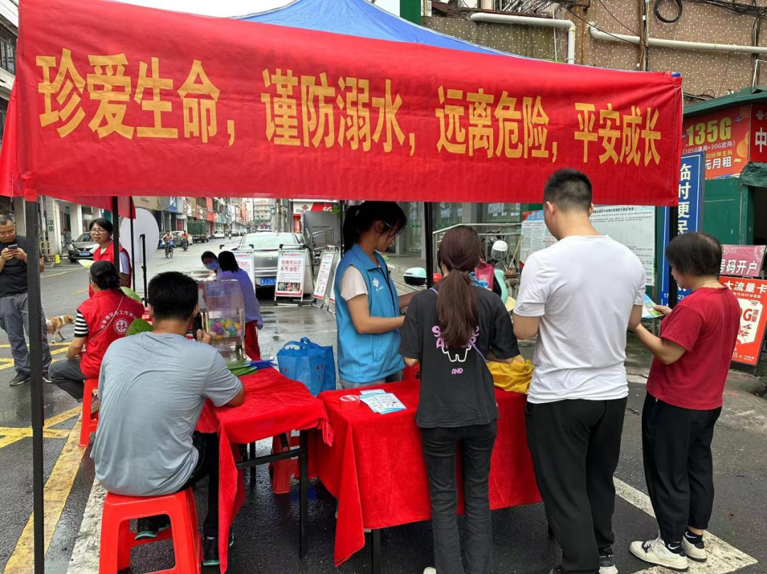 增强防溺水意识是筑牢安全防线的第一步。水口镇通过“线上+线下”相结合的方式,多角度广泛宣传防溺水安全常识及相关自救知识,夯实家庭监管责任,全面绷紧人民群众“思想弦”。一是举办防溺水安全教育宣传活动。各村(社区)联合水口镇“双百”社工开展2024年水口镇未成年人防溺水安全教育活动。通过PPT讲解、观看防溺水视频等多种形式,进一步加强辖区未成年人防溺水宣传教育,引导教育他们掌握自救和互救的方法,提高未成年人防溺水的警惕性和遇险逃生能力。二是设立宣传摊位。在人流密集的商场等点位摆摊设点,向过往的群众发放防溺水宣传资料;同时,针对留守儿童等特殊群体进行了入户宣传,确保他们及时了解到防溺水的重要性。通过面对面的交流,解答群众疑问,提供实用建议,进一步提高广大群众、学生家长的重视程度,在全镇营造浓厚的安全教育氛围。