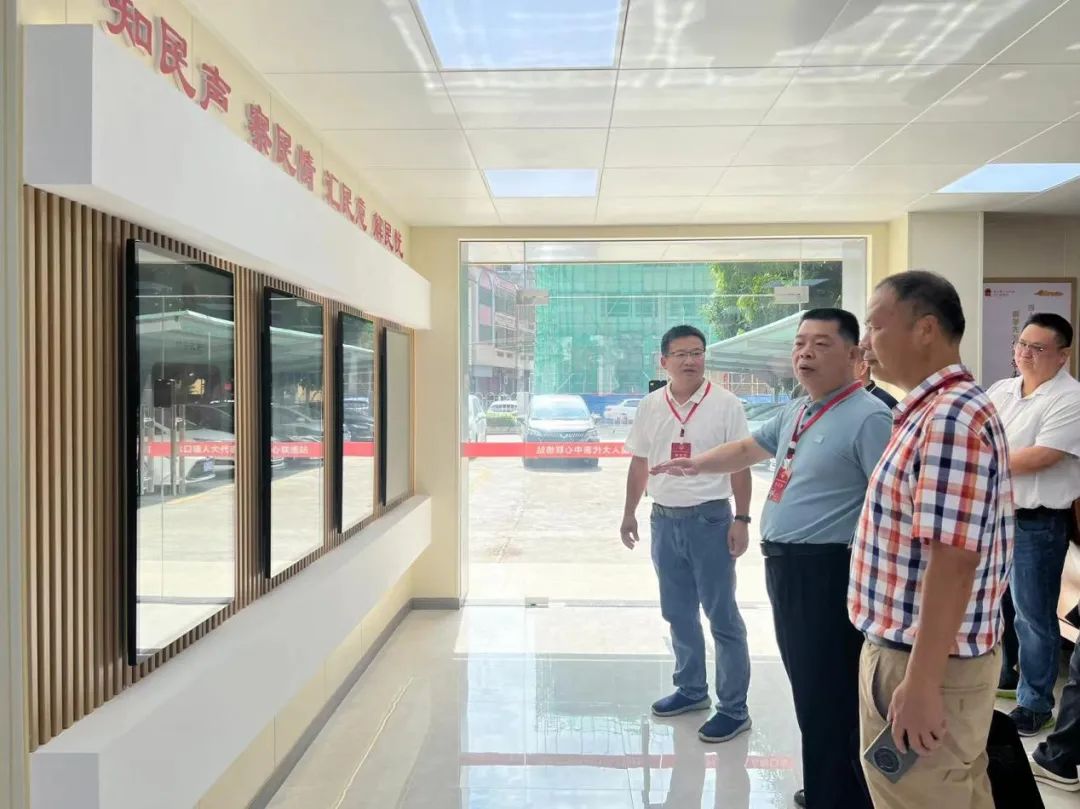 在水口镇人大代表中心联络站,调研组一行实地查看站点“三化”和“数字人大”建设等工作情况,深入了解联络站接访区、阅读区、办公区、会议区、代表风采展示墙、户外宣传栏等功能分区规划布局,并与江门市、开平市人大代表进行面对面沟通交流,详细了解代表履职以及工作、生活情况,认真听取了代表们对于群众普遍关心的热点、难点问题的意见建议,同时就代表们提出的旧城区改造、企业员工子女入学等问题进行深入探讨交流。