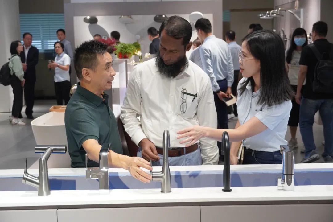 作为开平水暖卫浴产业的龙头企业,广东华艺卫浴实业有限公司凭借强大的创新实力频频“出圈”,多款产品荣获德国IF设计大奖、德国红点设计奖。其“智造”十足的水暖卫浴产品,赢得了首次来开平的国际采购商的青睐。