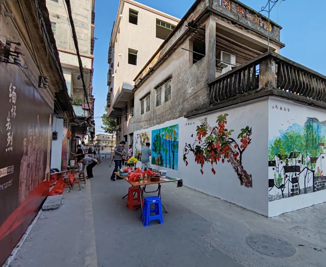 11月12日,江门市政协书画院艺术家走进水口镇后溪村进行墙面艺术创作,以其独特的视角和精湛的画技,用手中的画笔美化乡村环境,让翰墨丹青为村庄换上崭新的容颜。