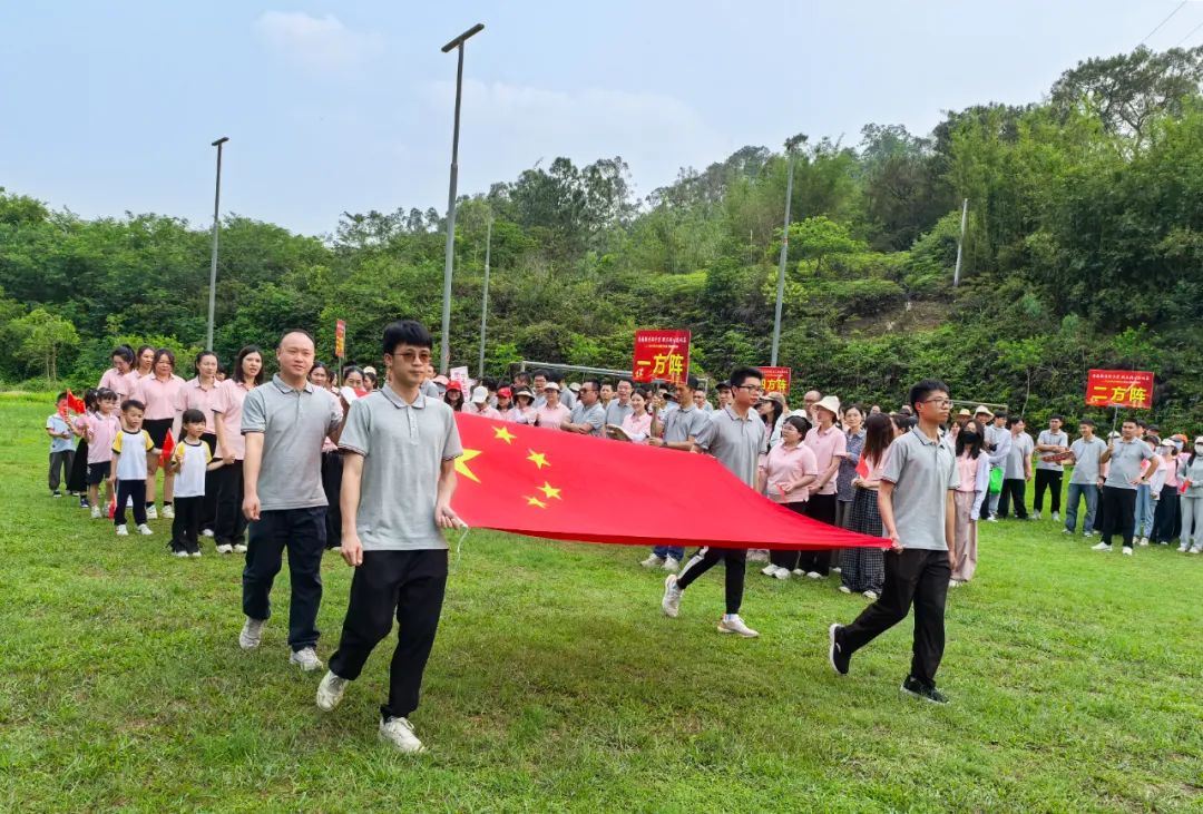 由水口镇幼儿园、水口镇第二幼儿园师生们组成的国旗护卫队,迈着庄严而整齐的步伐,擎红旗而来。参与活动人员共组成4个方阵,有序入场,充分展现出水口镇职工干部踔厉奋发、勇毅前行的精神风貌,点燃了整场运动会的精彩序章。